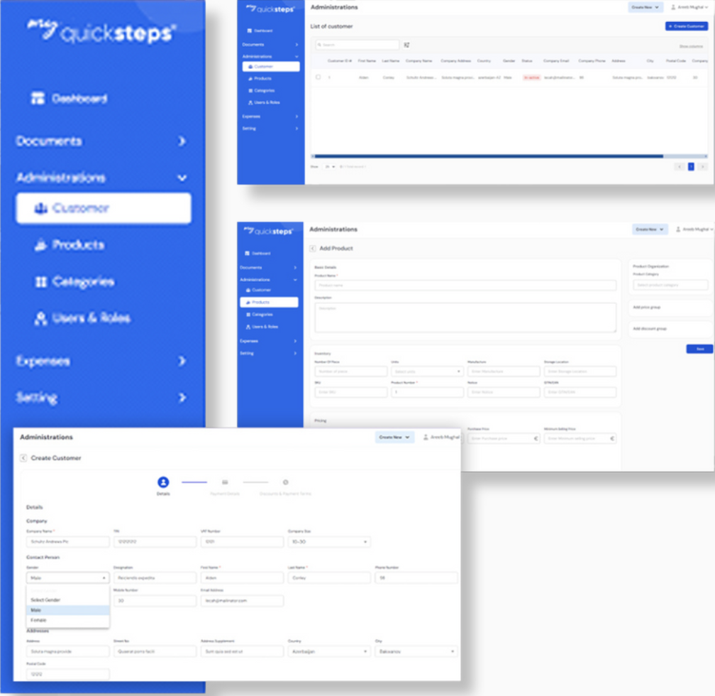 Quick Steps provides a comprehensive inventory management system that integrates invoicing, warehouse tracking, email communications, and secure access control. The solution includes invoice management for creating, updating, and completing invoices with a smooth Next.js interface. Warehouse stocking features track items, quantities, and locations in real-time using Postgres. AWS SES integration handles sending and receiving emails for invoice completion, status updates, and notifications. Agreement creation and revision capabilities enable users to create, revise, and finalize agreements related to invoicing and warehouse operations. OAuth-based role-based authorization ensures secure authentication, allowing only authorized users to access features based on their roles (admin, manager, employee). The system follows a modular repository pattern, organizing the codebase into independently manageable modules for improved maintainability and scalability.